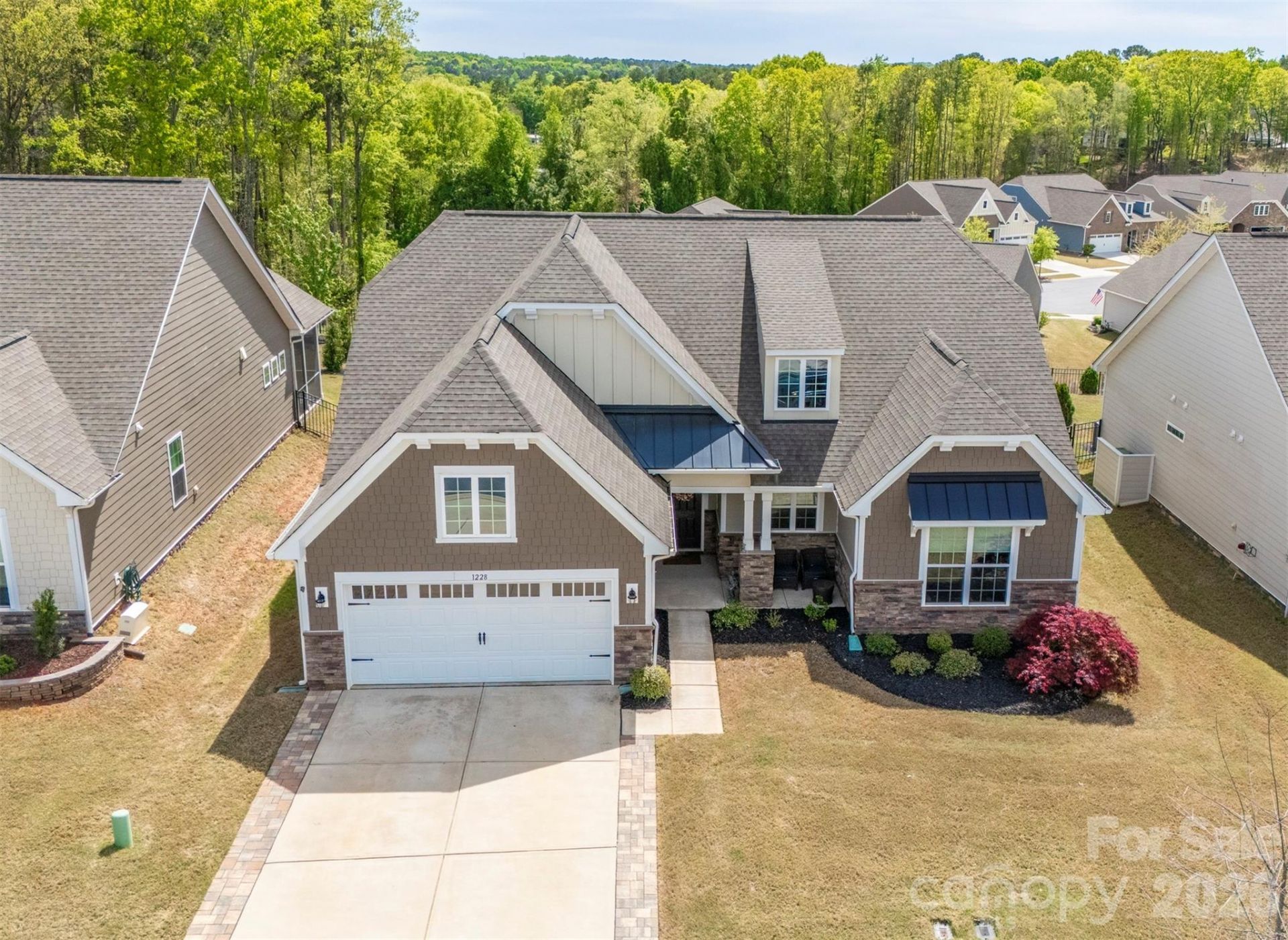 Exterior: Fiber Cement, Hardboard Siding, Stone Veneer