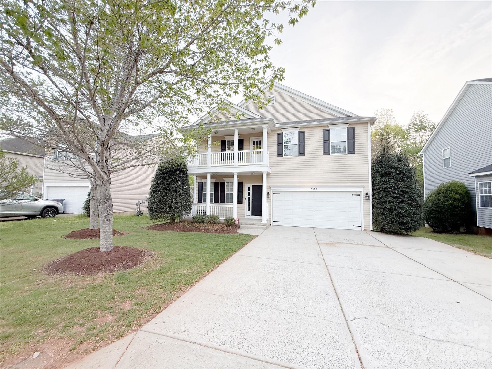 As of today's listing start date, this is currently the best price in the neighborhood of Canterfield Estates for this floor plan! Welcome to this beautifully maintained home in sought-after, established Canterfield Estates, offering community amenities including a pool, playground, and clubhouse. Ideally located with convenient access to Harrisburg, Concord, and Midland, this home combines space, function, and comfort in a setting surrounded by mature landscaping and privacy.The stately double front porches with classic columns create a striking first impression and set the tone for the spacious interior. Inside, you'll find a freshly and professionally painted interior in warm, neutral tones, along with durable laminate flooring throughout the main level. The layout features a welcoming front living room, formal dining room, and elegant arched doorways that add character and flow.The kitchen is designed for both everyday living and entertaining, offering a center island, abundant cabinetry, a walk-in pantry, and a bright breakfast area with windows overlooking the private, tree-lined backyard. The kitchen opens seamlessly to the family room, where a gas log fireplace creates a cozy focal point. A large Sony flat-screen TV is included. From the kitchen, step out to the deck?an expansive 447 sq ft outdoor space with great potential, with pricing that reflects the opportunity for improvement.Upstairs, the home offers four bedrooms, a loft area, and three full bathrooms. The spacious primary suite includes an 18' x 17' bedroom which flows into a 12' x 12' sitting room or flex space with its own walk-in closet and private access to the upper front porch. The primary suite also features a second, larger walk-in closet and an ensuite bath with linen closet and water closet. The loft features a wall mounted flat screen television. Additional highlights include a third-car driveway, fenced backyard backing to woods for added privacy, mature landscaping, freshly trimmed 10' holly bushes, and newly mulched beds. The laundry room offers built-in shelving, and the garage includes overhead wire rack storage.Recent updates include a newer roof (2022), upstairs HVAC (2022), downstairs HVAC (approx. 2016), range and microwave (2025), and a tankless water heater. Carpets on the stairs and upper level have been professionally cleaned within the past month as of this initial listing.Seller is offering a one-year home warranty (up to $700), providing added peace of mind.
